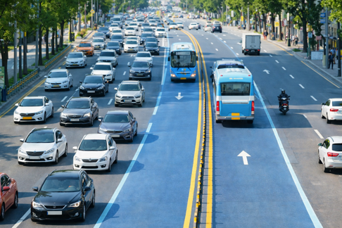 In major Korean cities, bus-only lanes are commonly used to improve traffic flow and maintain bus schedules.
